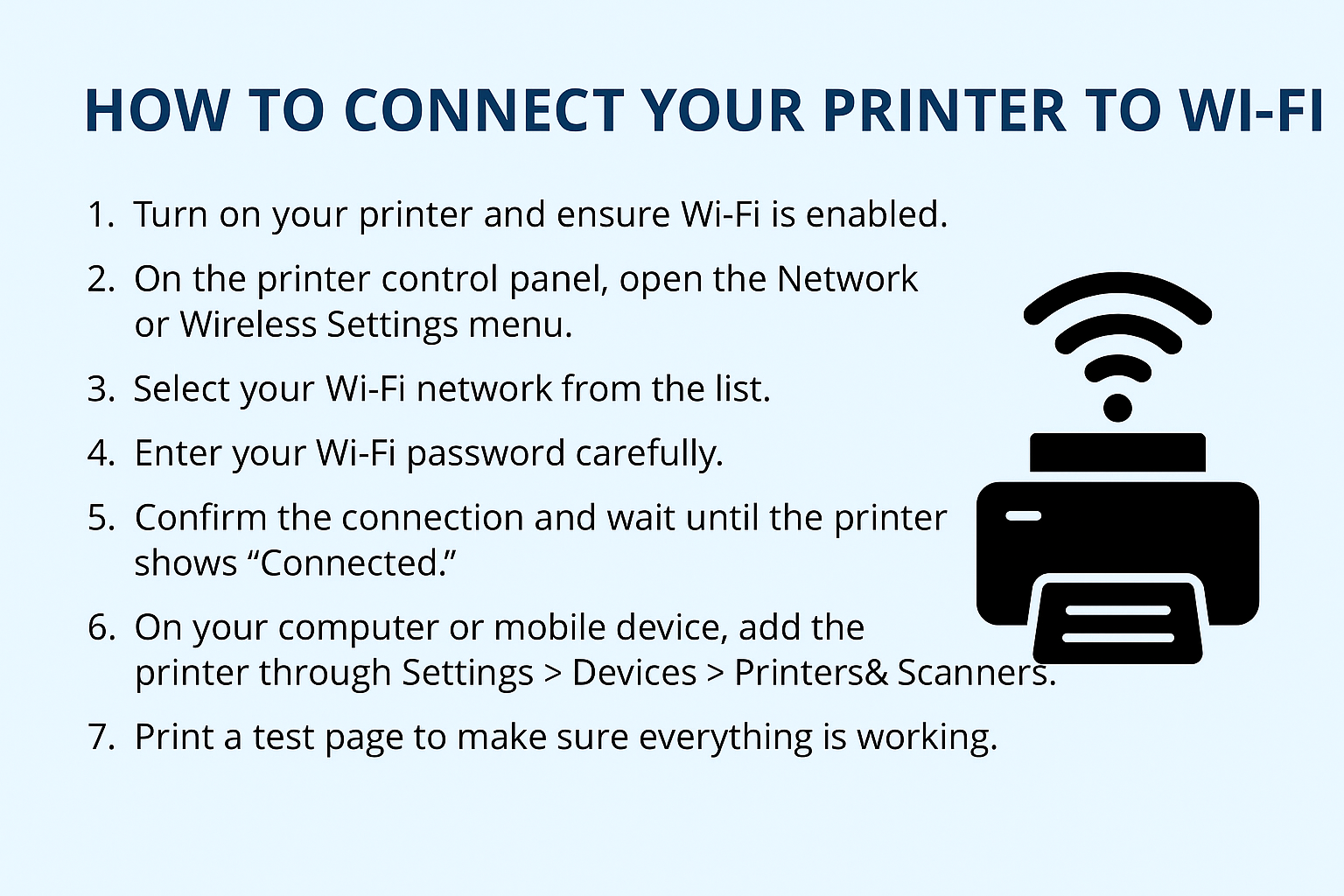 - Turn on your printer and ensure Wi-Fi is enabled.